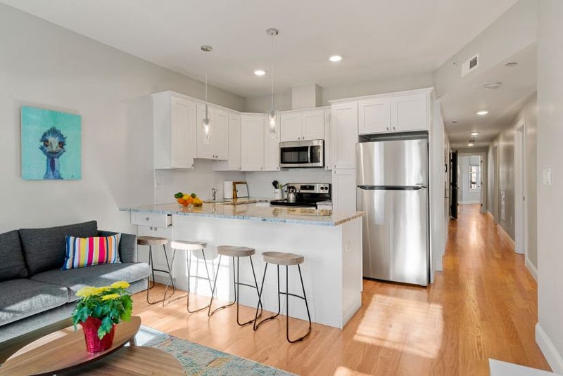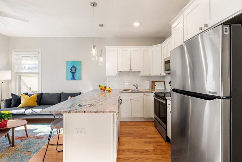 This fully furnished East Boston home has 5 bedrooms with 4 bathrooms (3 private baths, 1 shared bath). The property was completely renovated in 2019 and is a 3 minute walk to public transportation.