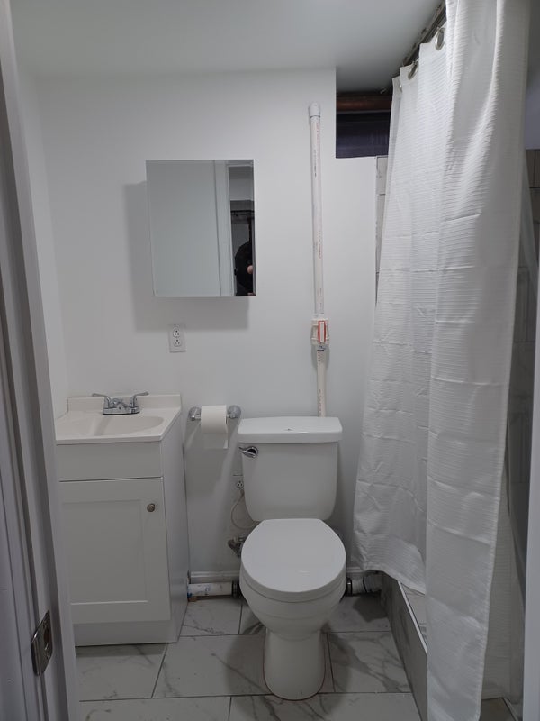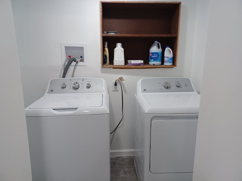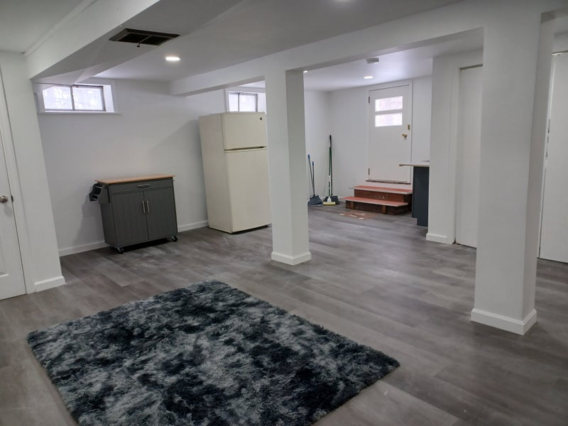 This is a rental space in basement. It has new insulation, walls, ceilings, and floors. It has a bedroom with a key lock with closet. Very large space for living room and wall cabinets, floor cabinet, sink with counter, It has a full size refrigerator. There is no stove. It has a new tiled bathroom with shower. Off street parking, own entrance, access to laundry. Beautiful area, close to highways and local colleges. Nonsmoker and no pets. Married couple lives upstairs.