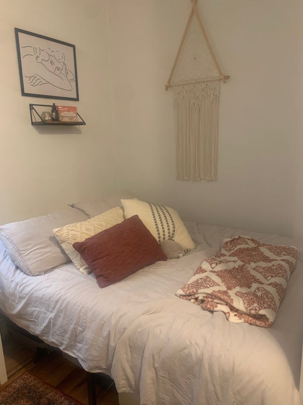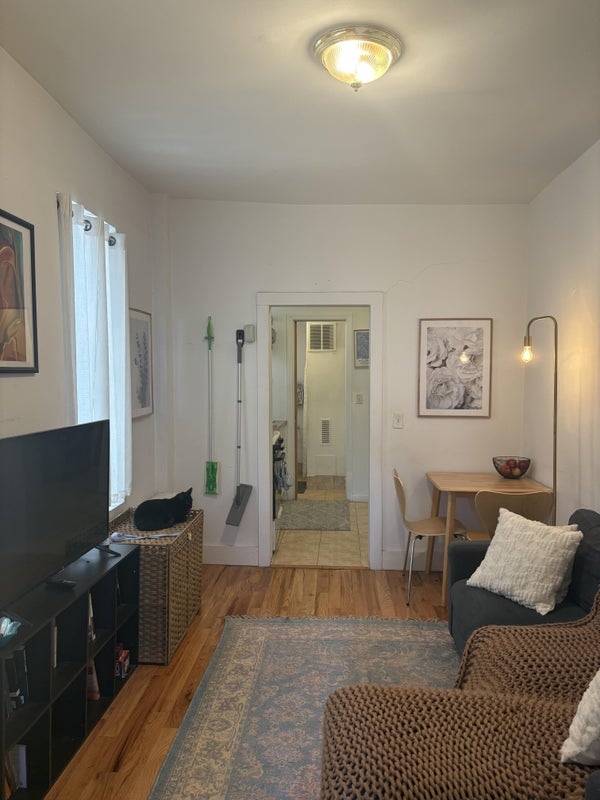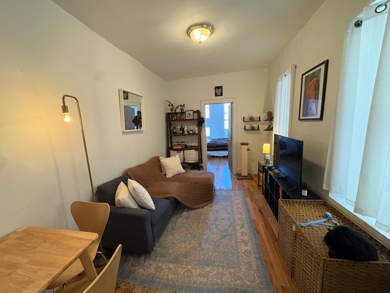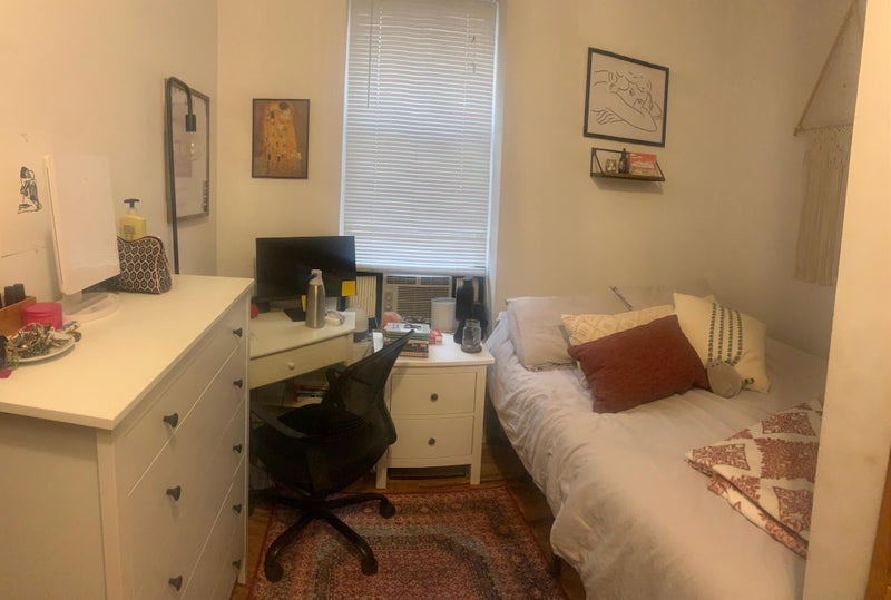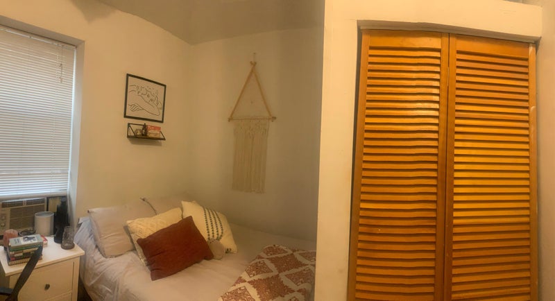 I am looking for a roommate to resign my lease with me in my East Village apartment. Private bedroom in a two-bedroom, one-bathroom apartment in Alphabet City. The room has a closet and a window and is large enough to fit a full bed, a dresser, and a desk. The apartment has a large living area and a full kitchen. The bedroom for rent is down a hallway off of the kitchen, and my bedroom is on the opposite side of the unit off of the living room, so there is considerable privacy. Apartment is a 5-floor walk-up in the East Village. I am a 27yo female looking for a female roommate in their 20s or 30s. The cat in the photos is my roommate’s who is moving out. I do not have any pets but small dogs and cats are welcome :)
