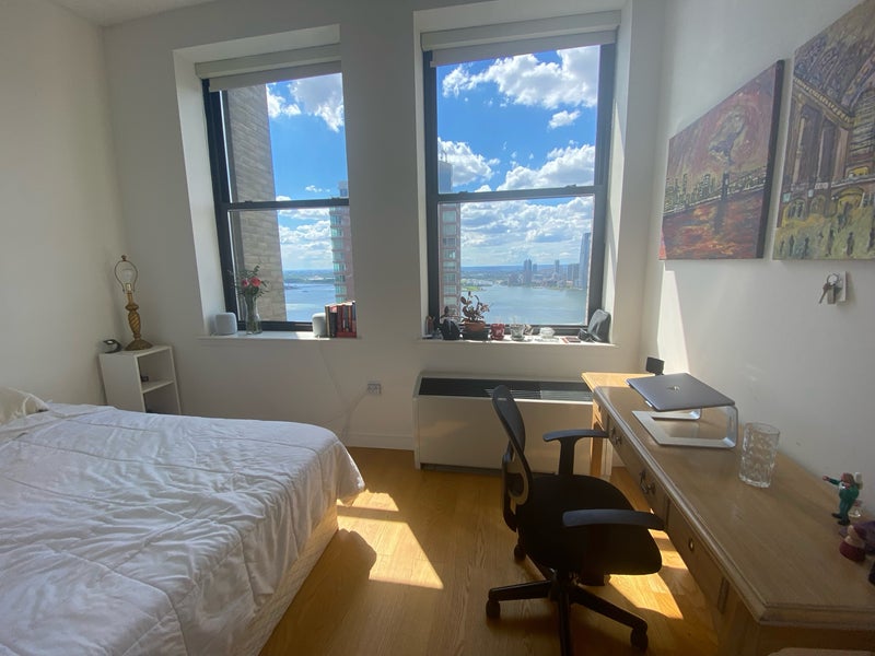 About the Room The room is a high-ceiling flex room filled with natural light. It comes furnished with a bed, desk, chair, and shelves, though we’re happy to remove any items upon request. It features two large windows with stunning Hudson River views. The closet is located just across the hall, offering full storage without taking up space in the room itself. It’s a cozy, bright, and functional space in a calm, friendly apartment — perfect for someone who appreciates both comfort and community.