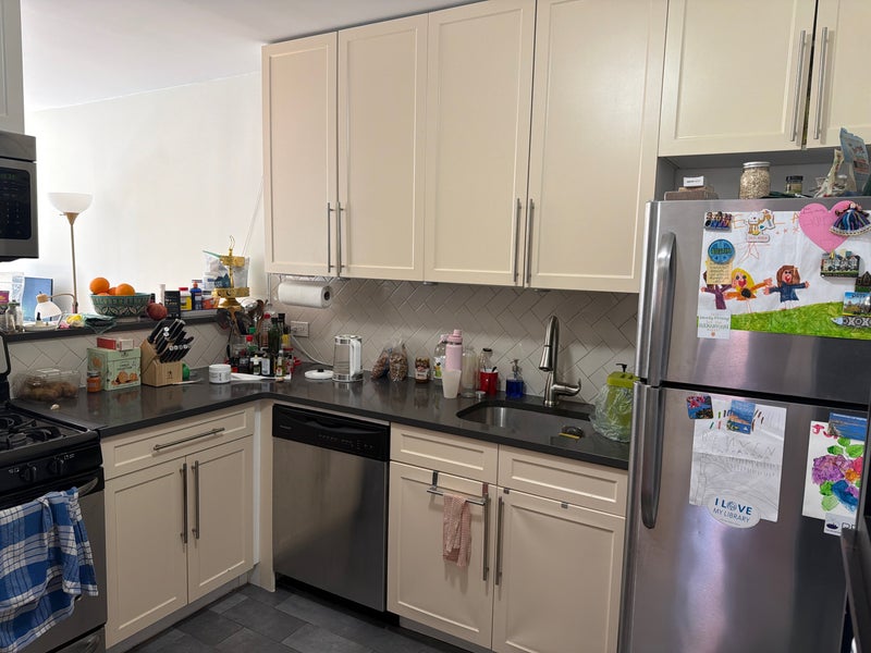 This sun-drenched corner unit features a spacious living room, modern kitchen with dishwasher, and an abundance of natural light throughout. The building offers 24-hour doorman service, an in-building gym, and laundry on every floor.
