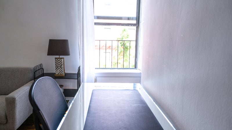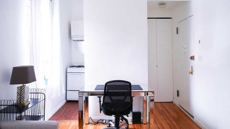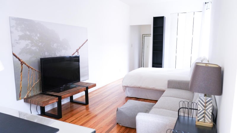 The apartment is in a walk-up building and comes fully furnished with everything you need for a comfortable short-term stay, including: • Bed • Couch • Flat-screen Smart TV with streaming • Office desk and chair • AC • Oven/stove • Refrigerator • Microwave • Pots, pans, utensils, and spices