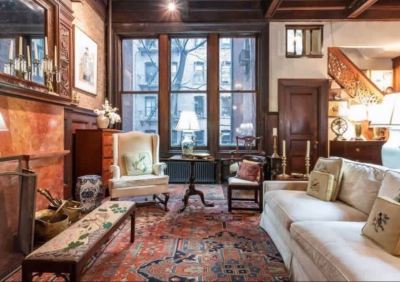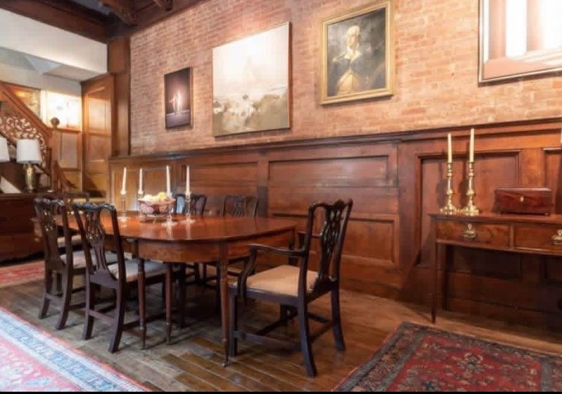 Atmosphere: • Beautifully decorated with English, American, and Asian antique furniture and rugs • Floor-to-ceiling carved fireplaces in wood and marble • Original 5-foot oak wainscoting and 20-foot beamed ceilings dating back to 1894 • Beautiful salmon-colored exposed brick, full of classic Upper West Side character