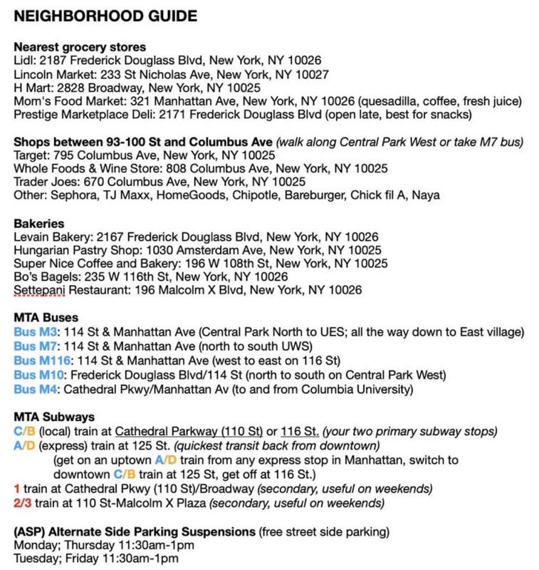 Location: Close to Columbia University (across Morningside Park) 4 blocks away from Central Park West side (of Manhattan) subway lines and useful bus routes