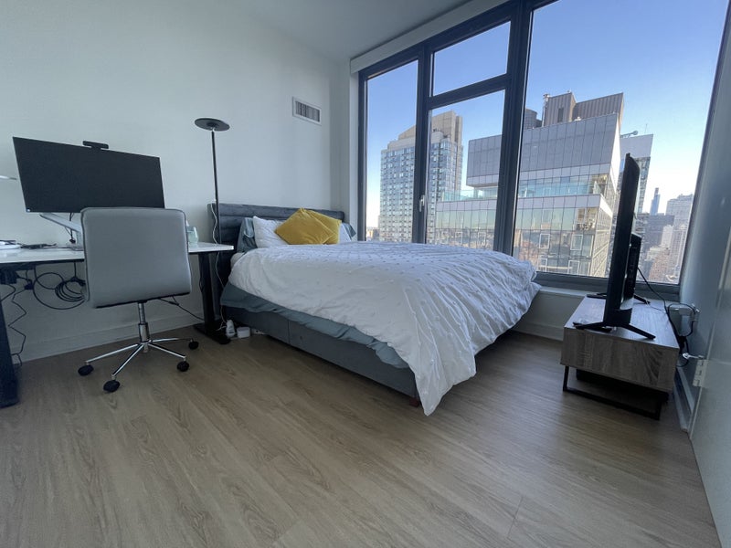 Your setup offers all the benefits of a 1 bedroom (own room, private bath, oversize in-room closet, additional closets in hallways, blackout blinds, very quiet, in-unit washer/dryer, etc., rarely used large kitchen) but with all the benefits of the living room space of a large 2 bedroom, and price lower than any studio in the building (not to mention any comparable 1-bedroom on the market...). Place is fully equipped with high-end furnishings!