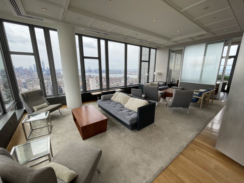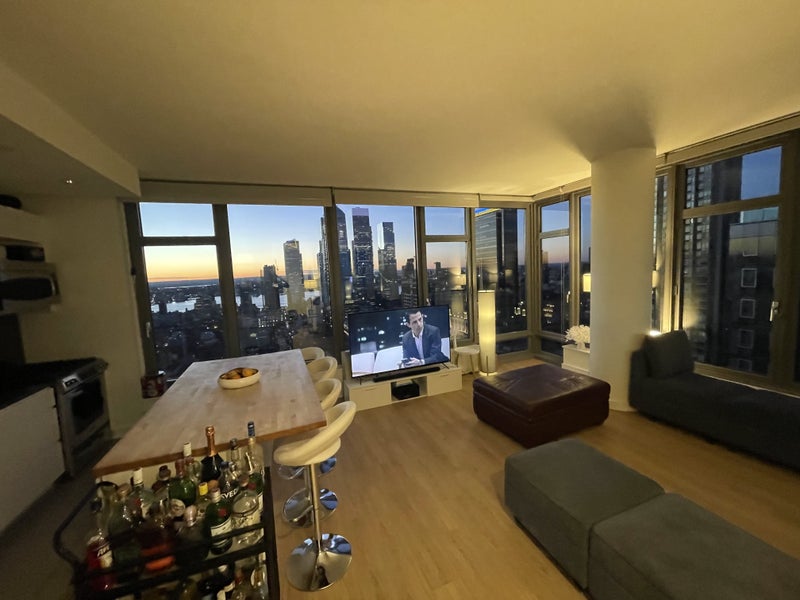 Building has 54th floor indoor & outdoor rooftops with breathtaking views and top-of-the-range amenities (pool table, movie room, co-working spaces), together with a full gym (multiple Pelotons, full weight room, etc.) with NYC skyline views.