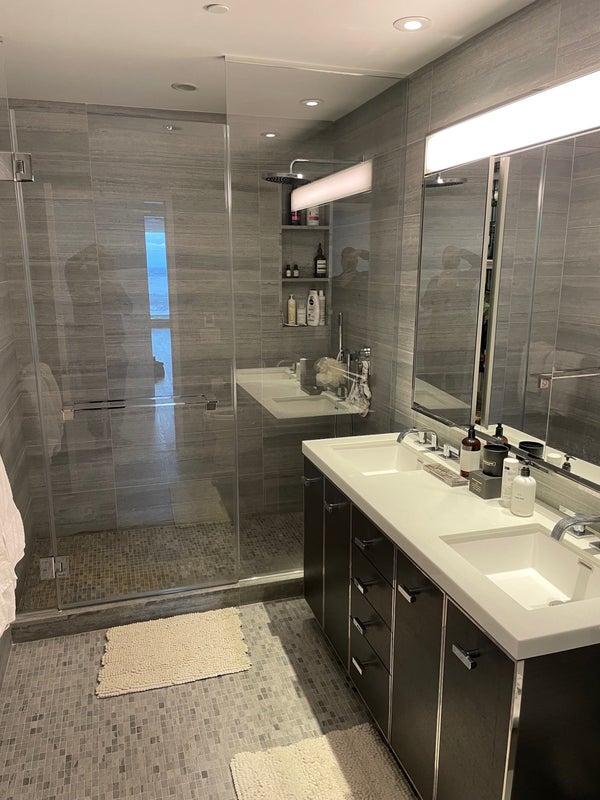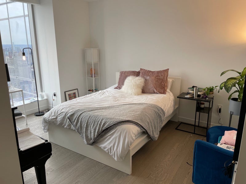 About the unit: Our apartment is a 1,667 square foot three bedroom, three bathroom with an open gourmet kitchen and breakfast bar. It’s a corner unit that faces North West and South West, with NY Harbor views and the city skyline (amazing sunsets!!). It features imported stone and custom finishes, premium Miele appliance package, 5 wide stained oak flooring, master bath with custom wood cabinetry, marble tile walls and mosaic floors with radiant heat, undermount Wetstyle sinks with glass vanity top and Dornbracht polished chrome faucets and a washer and dryer. We have also added an Ultra HD projector and screen for movie nights and a Devialet sound system in the living room. The great thing about this room is that it offers full privacy: The room is far away from the living room, you have an ensuite bathroom and you can easily get in and out of the apartment without interacting with anyone if you don’t want to 😊