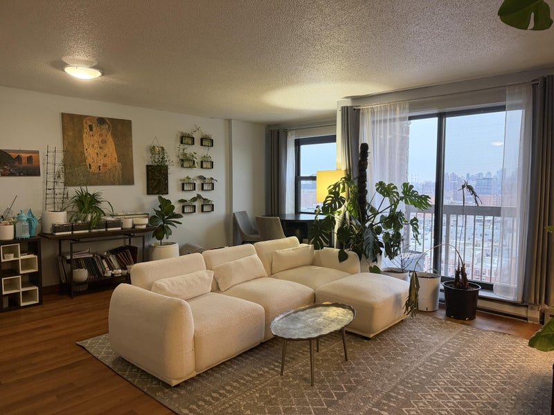 Amenities: There's a 24hr doorman, gym and laundry room in a 22nd floor apartment with the most amazing view of the Manhattan downtown skyline. Laundry room in the lobby. Large balcony with south facing city view. Apartment features hardwood floors, full kitchen with stainless steel appliances, ceramic tile floors, granite counter tops, extremely large living room and dining room.