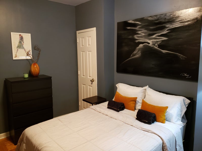 Welcome to your home in the heart of New York City. Large private bedroom in massive apartment perfectly situated for commuters. Large double bed with extra fluffy pillows contemporary style.