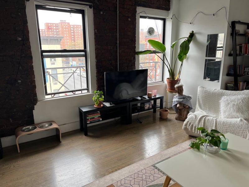 we are looking for a third roommate for the summer! we've got a gorgeous apartment with a huge shared living room, open plan kitchen, featuring exposed brick & a fire escape (+ maybe even a little roof access). the third bedroom has two lovely windows and a closet! there's pretty wood flooring and lots of natural light throughout the apartment. you're welcome to cook, hang out, watch movies, make art with us, whatever you like!