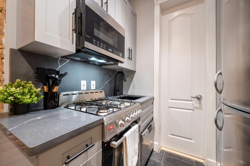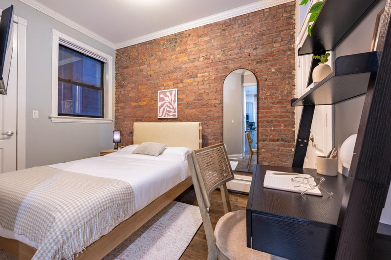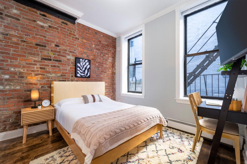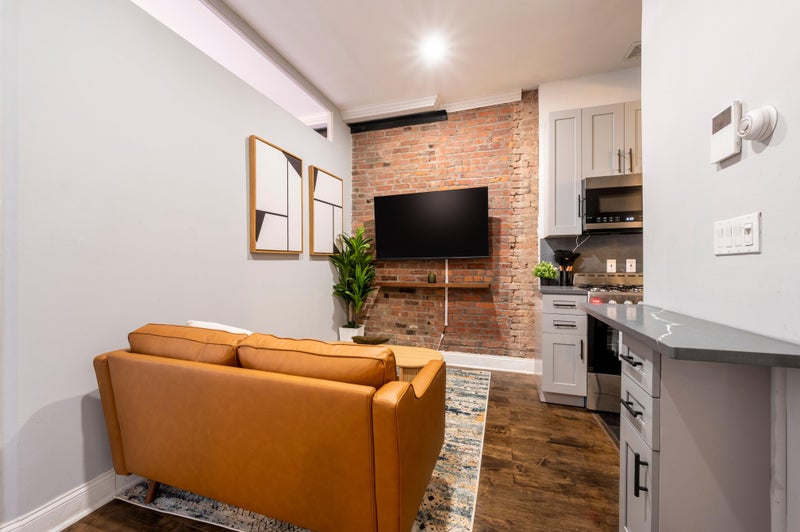 Live in the heart of the East Village in this stunningly renovated 1-bedroom, 1-bath apartment that perfectly combines modern finishes with classic New York charm. This bright, sun-filled home features skylights, exposed brick, and hardwood floors, creating a warm, open atmosphere that’s both stylish and comfortable