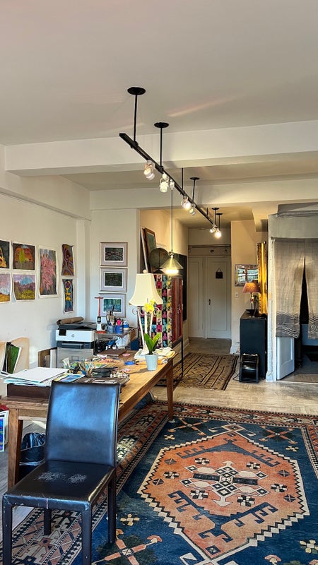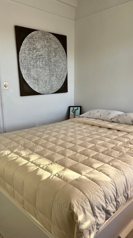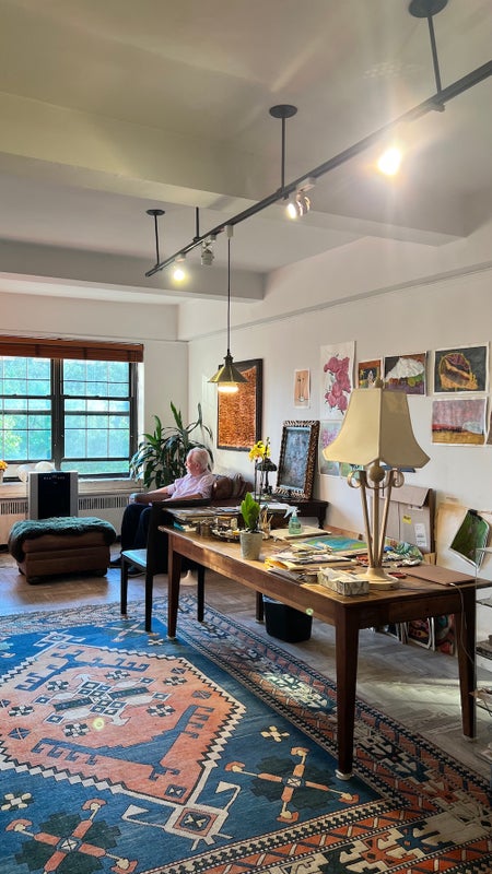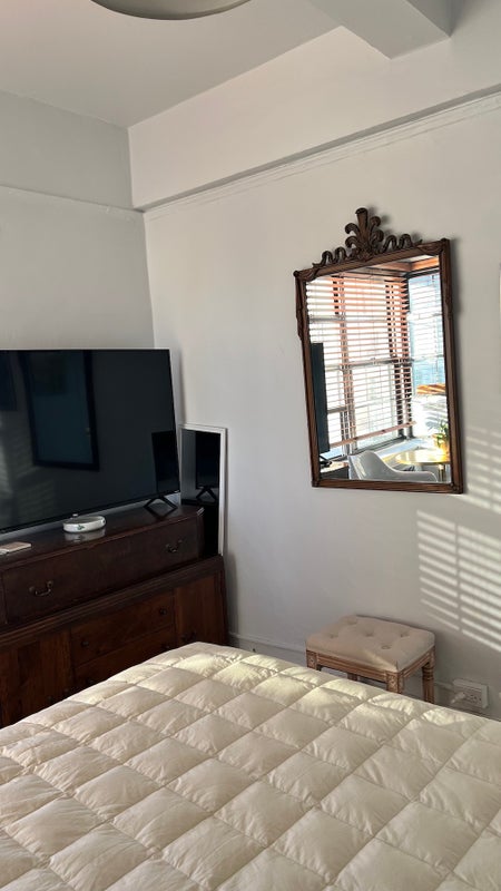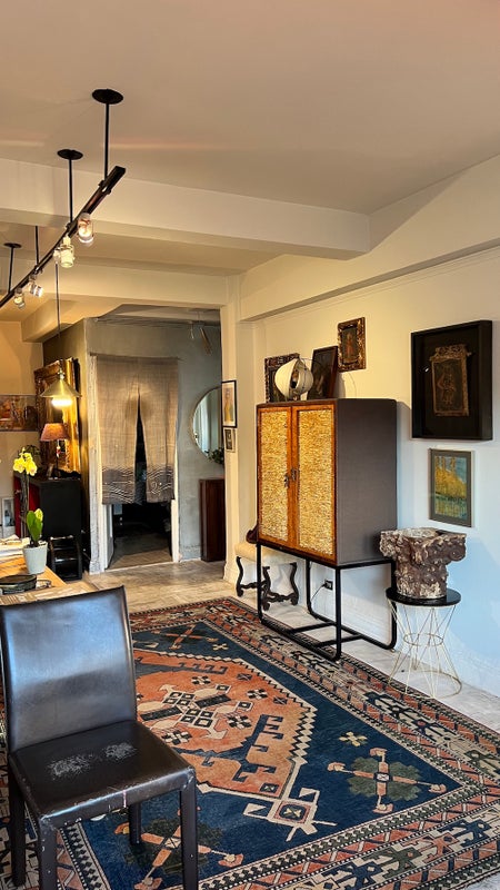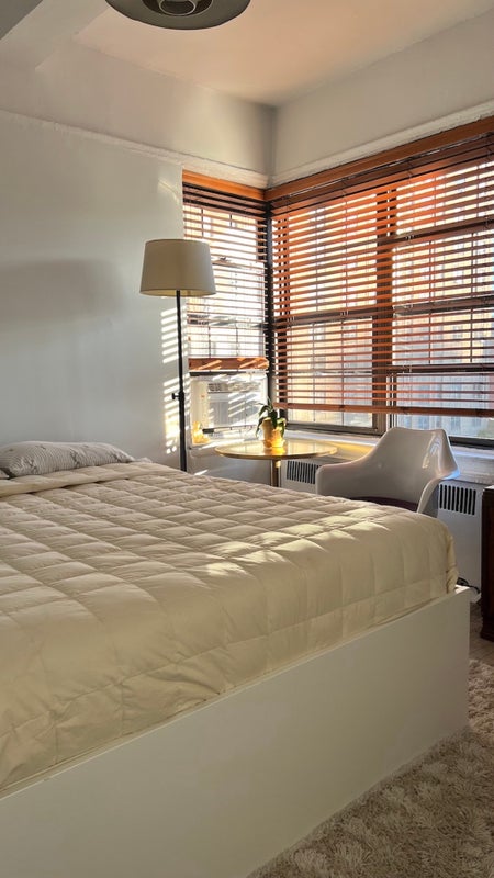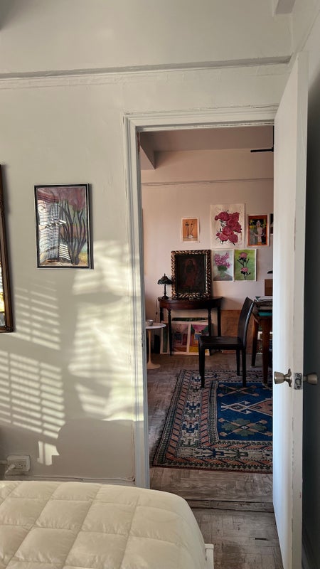 Furnished, cozy, sunny room with great views of Saint Mark's church (6th floor) in a two-bedroom apartment in the East Village. Laundry room and live-in super, secured clean building with elevator. The building is in the coolest areas with plenty of restaurants and cafés, buses and trains within walking distance including NY University, Cooper Union, Beth Israel Hospital, NY University Hospital and other institutions. The room comes with a nice queen size bed with storage drawers, chest of drawers, a round table and chair, mirror, AC and artworks. It also includes an outside closet with shelves. Included a 55" flat screen TV and free Wi-Fi. The main tenant is a retired lawyer and part-time painter and has been in the building for over forty years. Most weekends he is not around. Once moth deposit and one month rent required. AVAILABLE IMMEDIATELY.