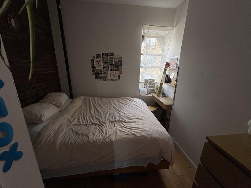 Hi! We’re looking for someone to take over a room in our three-bedroom apartment in the East Village! The available bedroom is the largest in the apartment, big enough to fit a queen bed (as shown in the photos). The previous tenant wants to leave furniture behind, so there’s an option for a partially furnished room! The rent is $2190 plus utilities. You’d be living with two 24-year-old female-identifying roommates who like to keep the space clean and calm during the day. It’s a really friendly, easygoing environment. We’re ideally looking for someone to commit by May 1st. The lease officially begins July 1st and is for one year, but move-in is flexible anytime between July 1st and September 1st. Message us for more information, and we can find a time to talk!