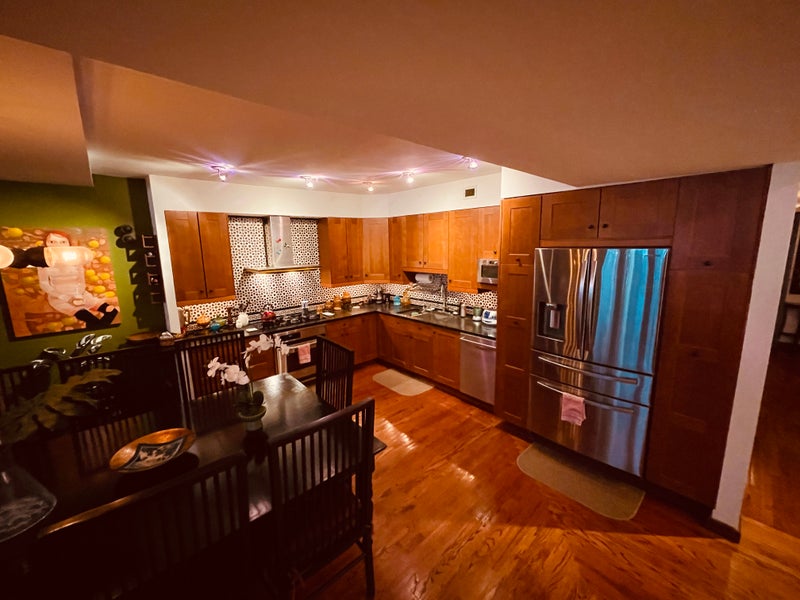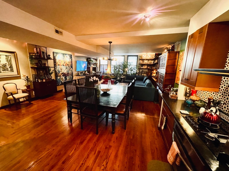 THE APARTMENT: 1,600 sq ft loft with 12+ ft ceilings—visitors call it “an oasis amid Manhattan.” You’ll share an expansive living/dining area and a large chef’s kitchen with high-end stainless appliances (Miele cooktop, French-door fridge, Bosch dishwasher) and filtered water for drinking/cooking/ice. Central A/C. Doorman building with rooftop terrace.
