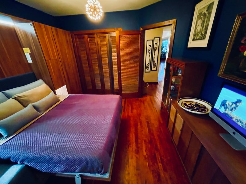 THE SUITE: Brand-new, turnkey bedroom with your own private bathroom + serious storage. Luxury hotel vibes. The centerpiece is a sleek, futuristic Murphy-wall system that gives you a queen bed + sofa + drawers + armoire + built-in desk in one clean, high-design unit—plus integrated charging stations. Add a large closet and a credenza with even more storage and you’ve basically got a private studio feel inside a gorgeous shared loft.
