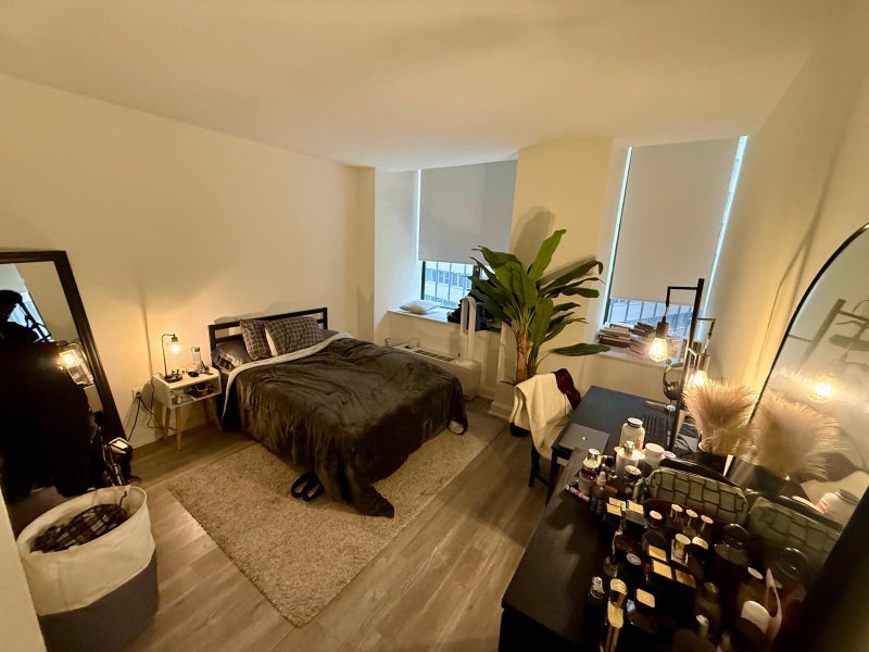 This room in the Financial District offers a well-appointed interior with a sleek finish and a modern kitchen featuring stainless steel appliances and plenty of countertop space. The building includes amenities such as a 24-hour doorman and concierge, fitness center, resident lounge, rooftop terrace, and on-site laundry. Located near Wall Street, Stone Street, and South Street Seaport, it’s surrounded by a variety of dining, shopping, transit options, and waterfront parks.