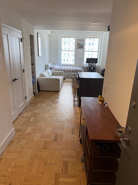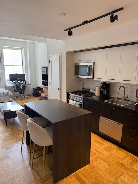 It's a spacious 500 sqft studio with everything you need: + Luxury doorman building with gym, roof terrace, and co-working space + In-unit washer and dryer, air conditioning + Fully equipped kitchen + Quiet, clean, and comfortable – great for remote work or a summer in the city + Steps from major subway lines and close to the waterfront + Perfect for someone in between leases, working in the area, or looking for a temporary spot in Manhattan.