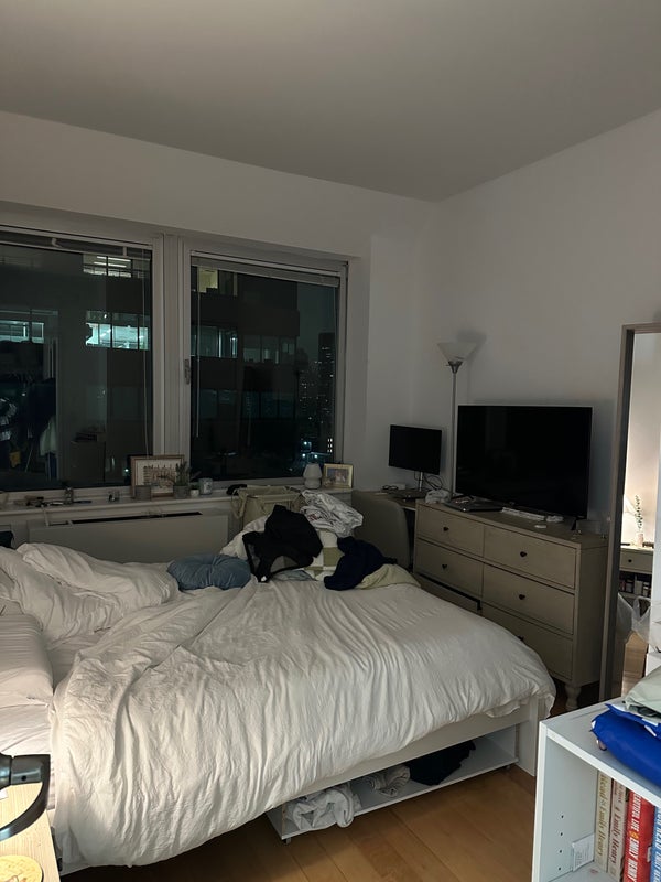 One large room available in a three bedroom. The lease starts May 1st and lasts for one year. The room has furniture inside if you would like to purchase it. The apartment has a dishwasher, TV, piano, and nice views. The building has a doorman, gym, lounge, and rooftop. My roommate and I are both in Fashion and are barely home.