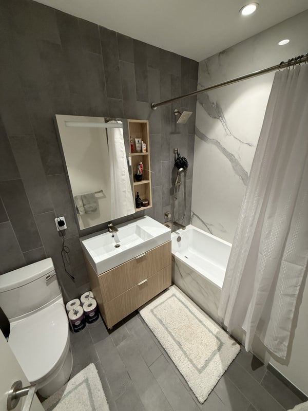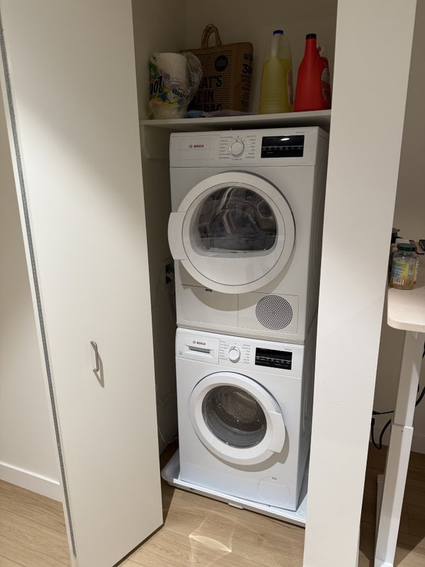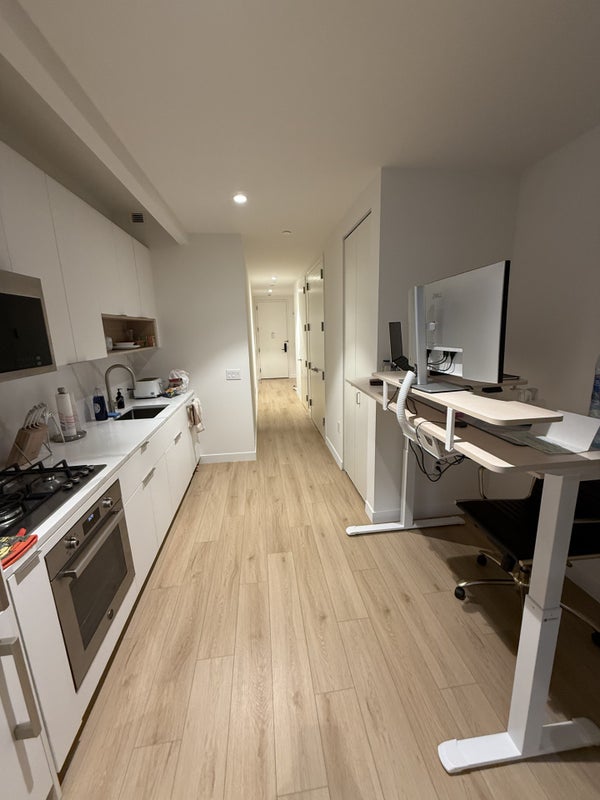The apartment is fully furnished and well maintained. It has a washer and drier in-unit, and a work-from-home set-up with a standing desk.
