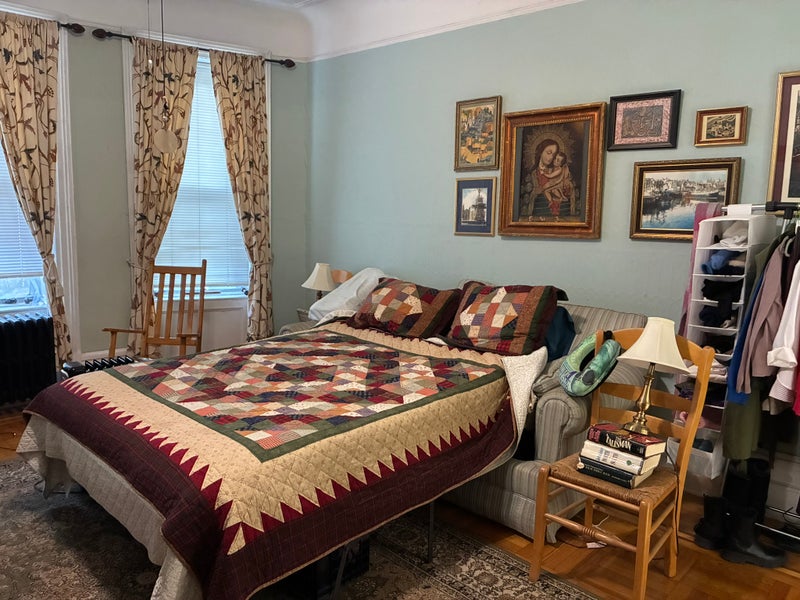 June 8 - July 21 ONLY. Very large private room fully furnished with private bath, share kitchen and public spaces. Wifi, utilities included. 2 blocks to City College, close to Columbia Pres , Columbia U., many parks, busses and subways. Quiet and respectful house, great housemates. Message for virtual or in-person tour.