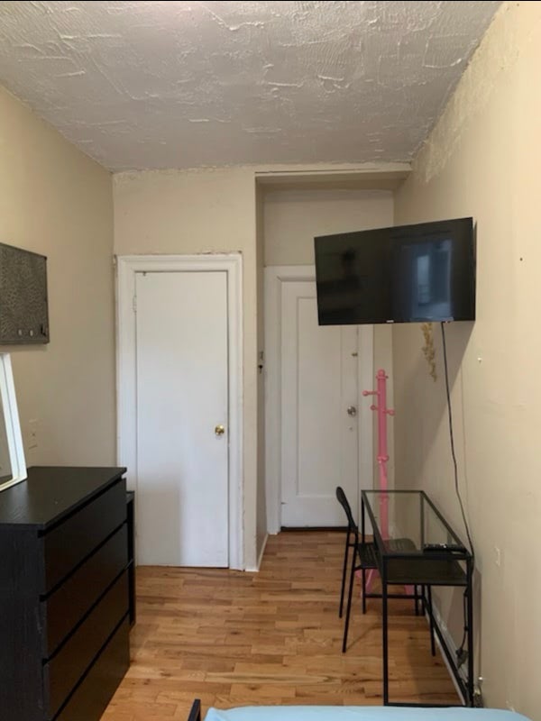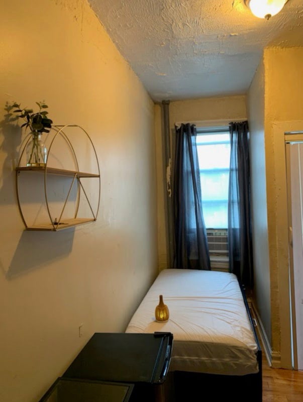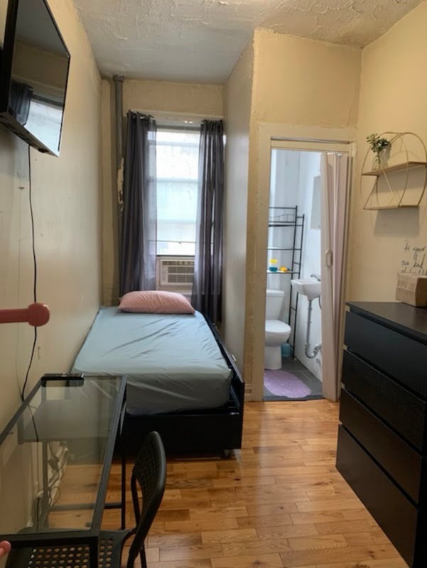 Great natural light from the window and a calm environment, ideal for someone who works or studies. The apartment has hardwood floors and a simple, clean setup.