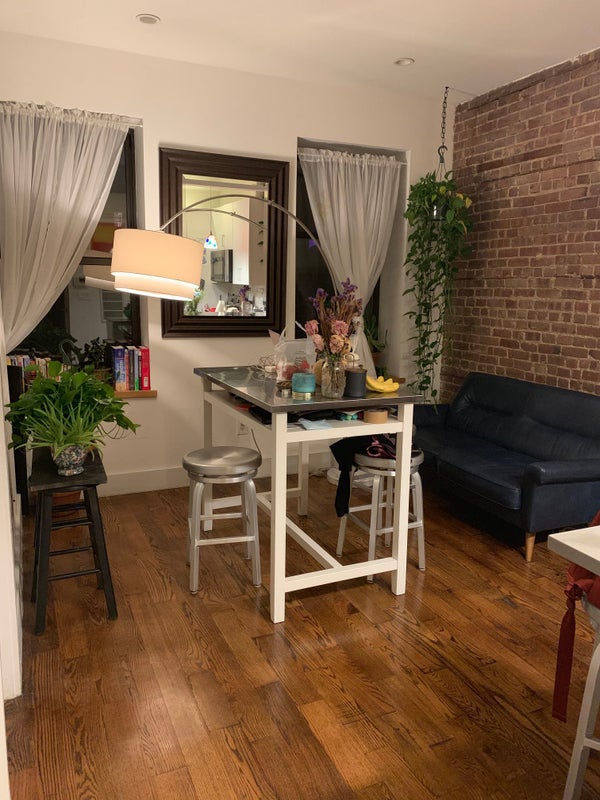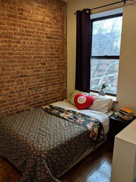 Hello! We have a room available in a sun soaked third-floor-walk-up brownstone on a quiet street in the heart of Harlem. The room is light filled, accented with exposed brick and hardwood floors, and comes furnished with a full-sized bed, dresser, and built out closet space. The apartment is 3 bedrooms / 2 baths, charming and clean, and newly renovated. It's spacious and equipped with all new appliances in both the kitchen and bathrooms. Central Harlem is lively with great local restaurants, bars, music, coffee shops in the area + Whole Foods. Conveniently located just a few blocks from the express 2,3 trains and about 15 minute walk to the A, C, 4,5,6 and Metro North. An easy 15 minutes to Times Square / 42nd street.