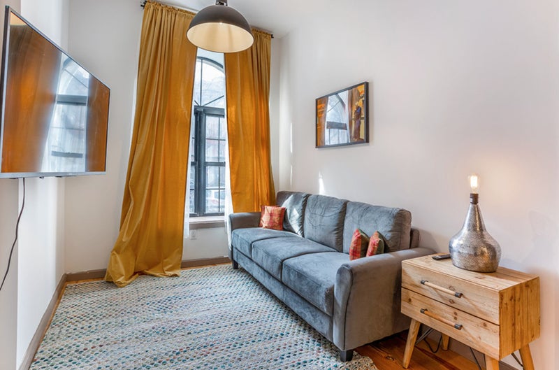 The house is a renovated building with updated appliances, hardwood floors, large windows and historic details. The Upper Manhattan House has three units altogether, each with private bedrooms, a modern bathroom and a spacious living area as you enter the apartment. All of the common areas are massive in comparison to your average New York City apartment.