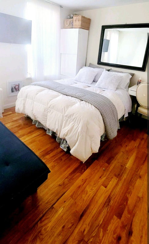 Enjoy a spacious, elegantly designed room in a large Harlem apartment. Decorated in soothing white, cream, and beige tones, it’s a perfect retreat. The host is rarely home and ensures a peaceful, private stay.