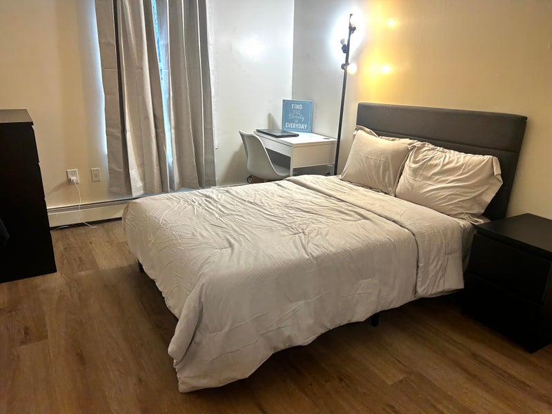This is a comfortable, lived-in duplex with a practical layout—shared common areas downstairs and sleeping quarters across both floors. The setup works well for people who want a balance of community and personal space in a quiet, residential Harlem block.