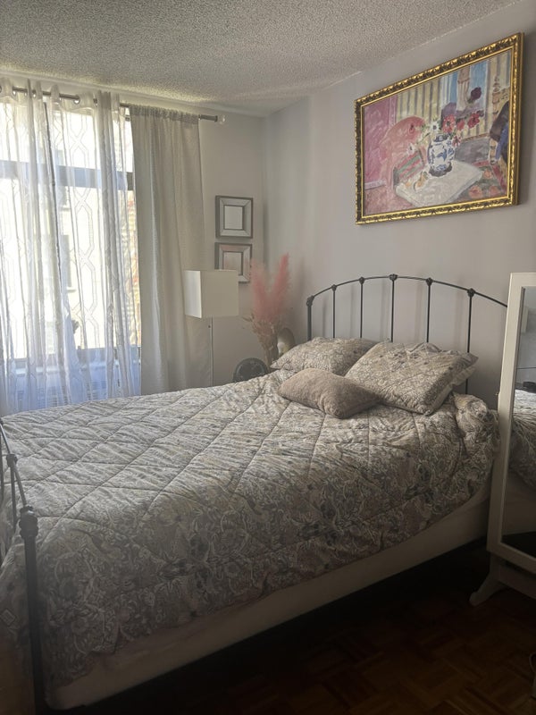Furnished bright room available in a 2-bedroom apartment share located in the Sugar Hill section of Harlem. The female owner of the coop apartment lives in the second bedroom. The apartment includes amenities such as a washer/dryer, dishwasher, WiFi, etc. The building has a doorman/concierge, gym, library, and courtyard. Neighborhood amenities nearby: supermarket is 3 blocks away, local coffee shops, Starbucks, gym, recreational gym/park/pool across the street, and trains A, B, C, D, and #3 trains are within walking distance, 3 blocks away.