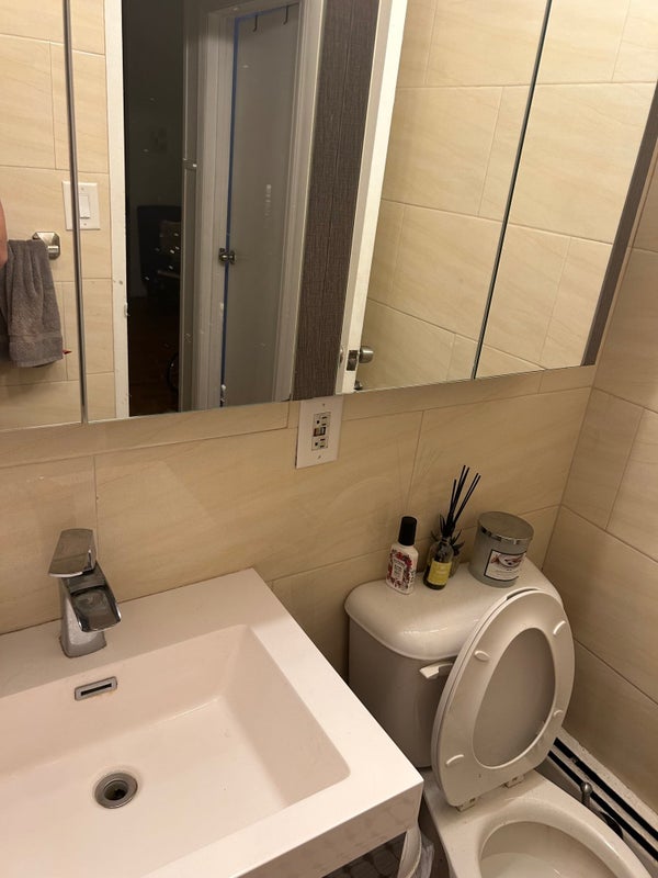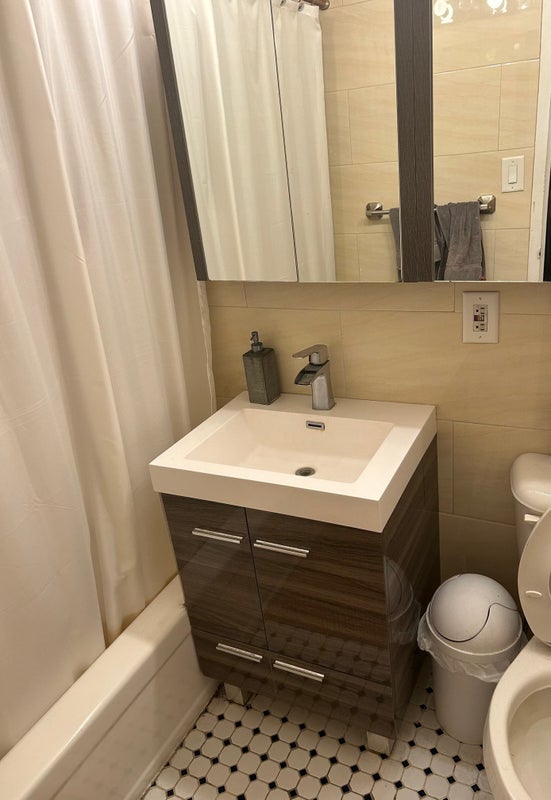 The rest of the apartment is also pretty large! The kitchen is a typical small NYC kitchen, so no chef meal preparation unfortunately. We have a recently renovated bathroom as well that the roommates all share. The building has an elevator! Even though we are on the 2nd floor, it can still be nice to have that option, especially for moving. The building also has washers and dryers in the basement, so don't have to worry about walking around outside when its gross to do laundry :)