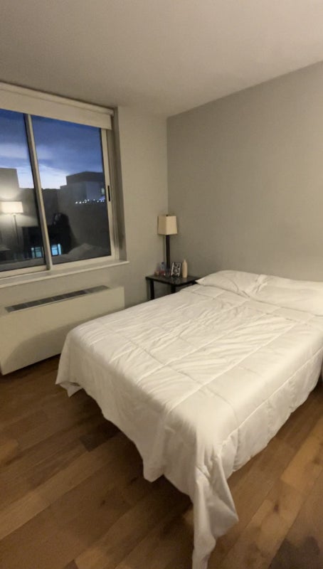 Building amenities include a gym, terrace, pool, sauna, business center, 24-hour doorman, and pool table — all covered in the rent. This is a female-only apartment shared with other working professionals. The room comes furnished with a bed, desk, chair, lamp, two dressers (one of them is inside the closet), and a night stand. If you're interested, please message me!