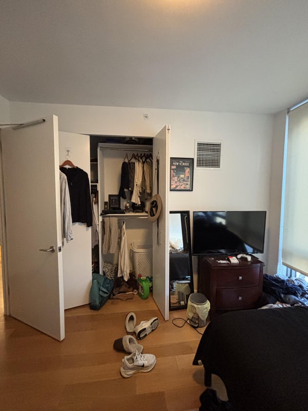 Hello, we are 2 professionals in our 20s looking for a third roommate to resign our one year lease starting Feb 1st. It is a 3 bedroom apartment with 2 bathrooms. You will be sharing a bathroom with one other person. Washer/dryer in unit. Luxury skyrise with ameneties like rooftop deck, outdoor patio, gym, and indoor basketball court. About a 7-10min walk from Columbus Circle We are fairly quiet, clean, respectful and tend to keep to ourselves. We are looking for someone similar. Furniture show in pictures is not included.