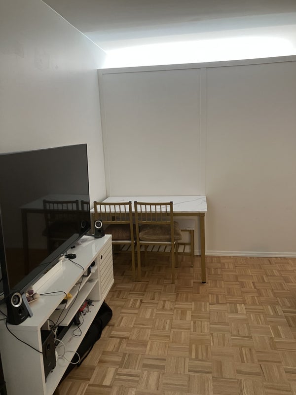 Looking for a roommate for a flex room in the living room for a doorman, luxury building located in Hell's Kitchen 2BD / 2 BA - you will be sharing a bathroom with a male roommate Please text at if you have any questions Roommate 1 -Early 30s Female -Fintech -NYU Grad Roommate 2 -Early 30s Male -Fintech -NYU Grad Amenities -Gym -Laundry Room -Resident Lounge - Outdoors