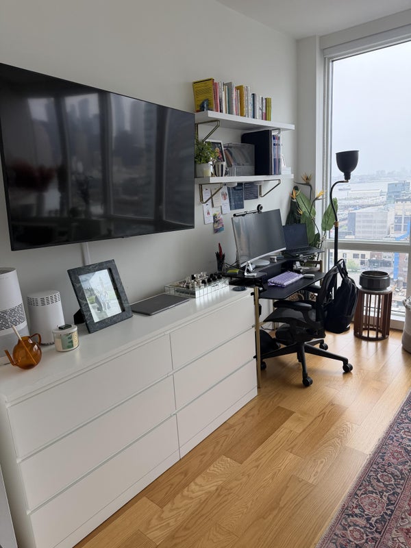 Apartment comes fully furnished, there is no option or flexibility to remove any furniture. All personal belongings will be gone, but kitchen items, cleaning products, two Dyson air purifiers, humidifier, desk monitor, bedding will remain.