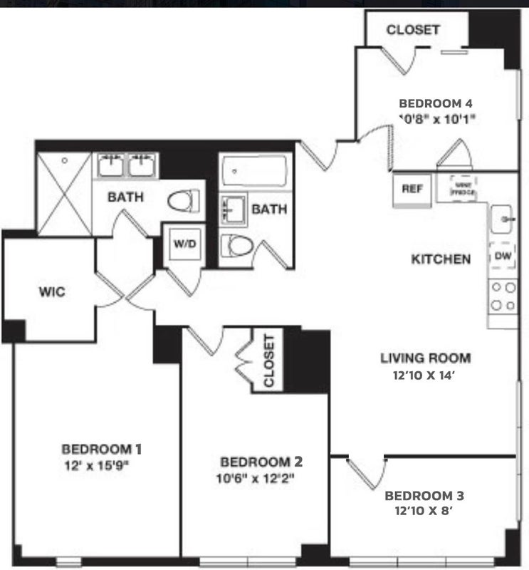 The apartment is a four bedroom, two bathroom unit shared with three friendly and personable working professionals. Everyone is respectful, social, and keeps the space clean. We are looking for someone similar, ideally mid to late 20s, professional, and considerate.