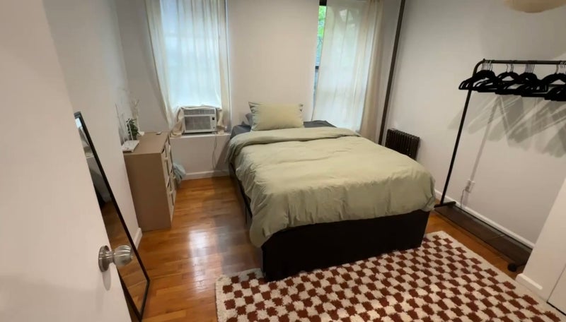 No laundry (pickup service available or laundromat 3 minute walk away) No pets 4th floor walkup building Has a closet in bedroom Has intercom Has a package area AC unit and TV installed for you to use!