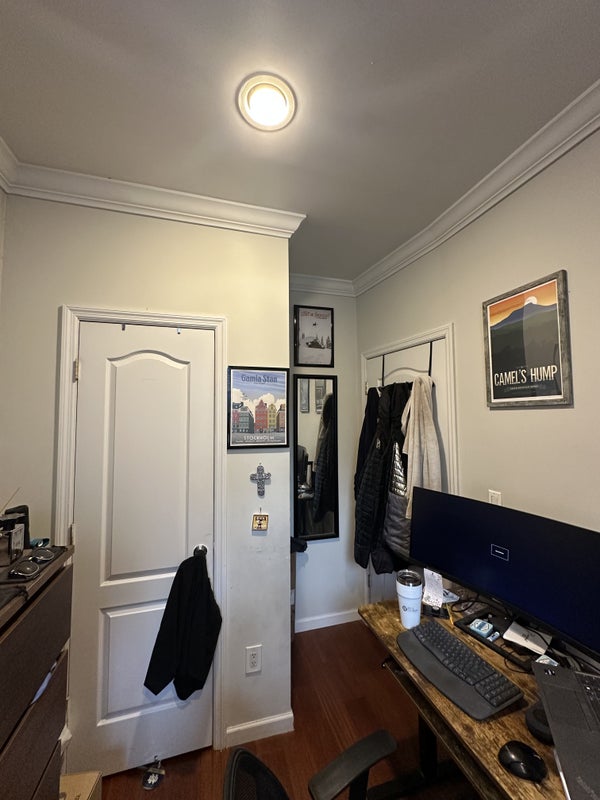 Room has a closet and is currently equipped with a full-sized bed, dresser, and a desk. Roommate is willing to leave the furniture or get rid of it if you’d prefer the room to be unfurnished.