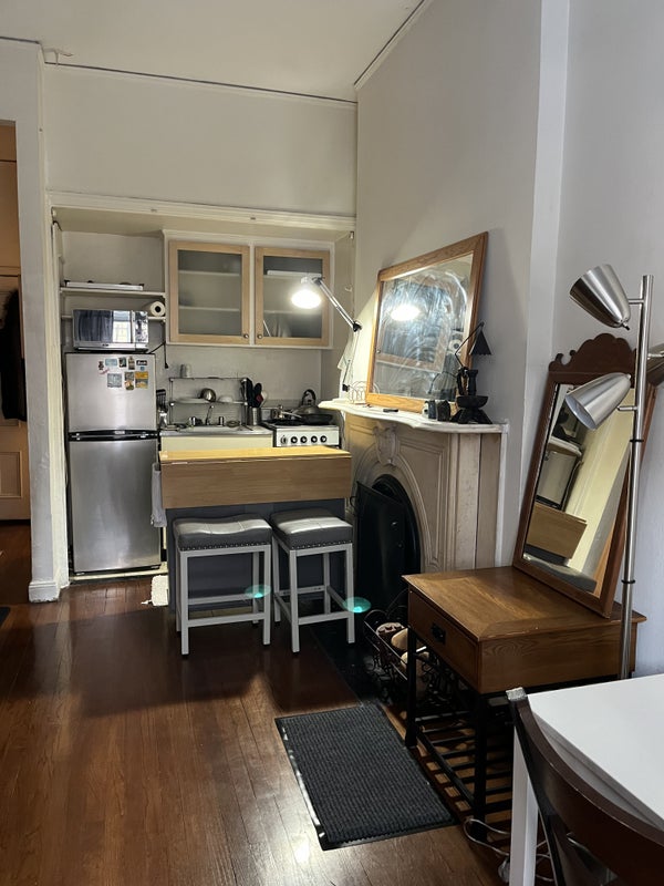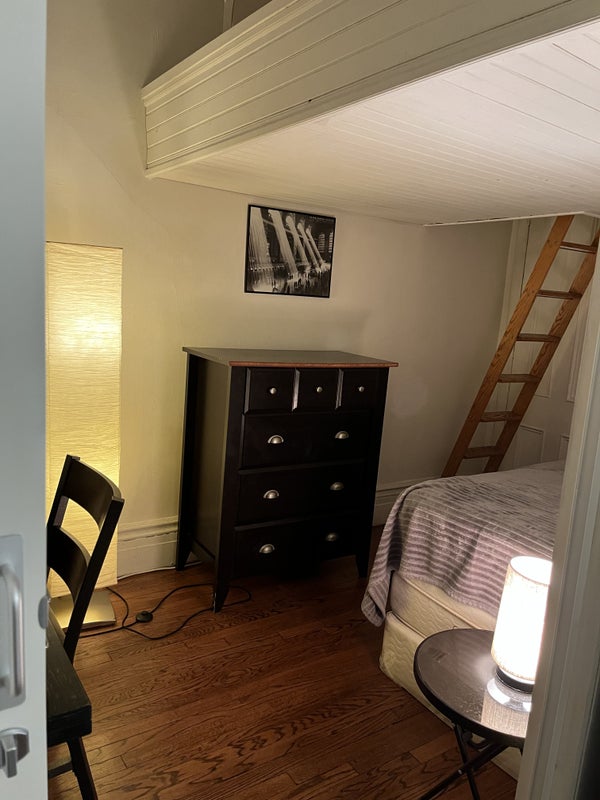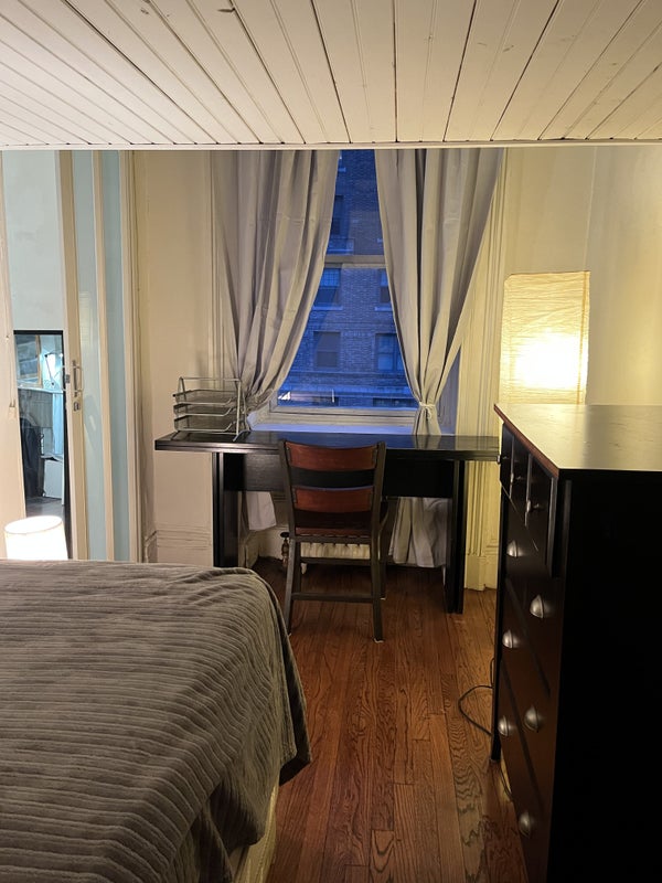 Brownstone walk up 4th fl apartment is only few blocks walk to Central Park, subway stations, buses stops, groceries stores, super markets, restaurant, dry cleaners /laundromats, hospitals, museums, colleges etc. Apt has large windows, fireplace, high ceiling, large closets, bedroom with queen mattress on the 6’ high loft, twin mattress below loft, small cooking area and one bath room.