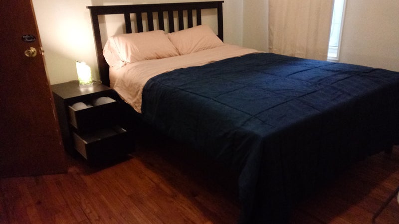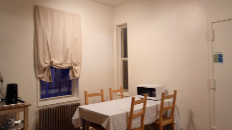 Living room has a roku tv, futon couch and coffee table. Students would be fine and we are a short walk to NYU. and I am installing locks on the closet doors.