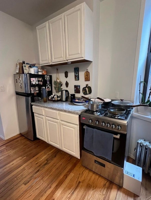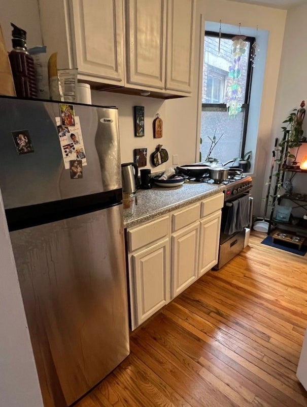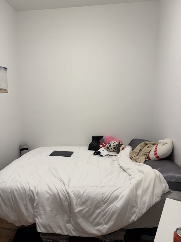 This is a small room for rent in the LES. The apartment is bordering the Lower East Side and Noho. It is close to most train lines like the J, Z, F, BDM, 456, etc. The apartment is located on a quieter street with only a couple bars/restaurants below. It is very close to tons of bars and restaurants. The apartment is a 5th floor walk up with no elevator. The room for rent can fit a queen bed but a full is recommended for more room. There is NO CLOSET in this room. There is also no living room, just a small kitchen and a small table with chairs. I am looking for a female roomate who is clean in common areas. I don't mind if you go out just be quiet when you get back!