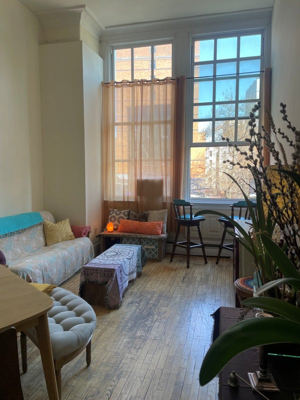I travel a lot since recently and am only present in the apartment 5-6months of the year. I am renting my 2nd Bedroom and 2nd Bathroom as well as the Living Room, which will be 100% yours. All rooms are fully furnished. The apartment is in a former school building and has very heigh ceilings and windows (15 feet) and gets lots of sunlight. The A, B, C, D train Station is in front of the building. You can't really hear the trains and it's super convenient. It's in walking distance to Columbia and two local parks and about a 15min walk away from Central Park and 10min to the Hudson River. Wholefoods and Trader Joes are 10min away (walking distance). I've lived in this neighborhood for a very long time and love it here. I am considering couples as well, at a surcharge of $200 extra a month. I'm open to pets. I love animals. I am open to short and long-term rentals. Cleanliness in the common area (kitchen) is important to me. The bedroom in the picture shows it as unfurnished. It will be fully furnished upon occupancy.
