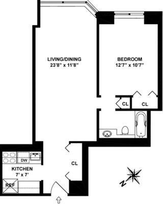 Room available is the true bedroom (floorplan doesn't show my room, which is flex room). Apartment has shared bathroom. Additional closets: 2 wide closets in the front, and we each use 1. Plus additional closet for storage, etc.