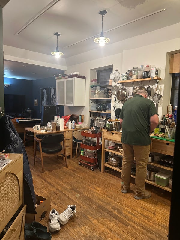 A bit about us: I’m the primary and sole lease holder of this rental, I’m a sculptor/painter, fine arts fabricator, and scenic. My primary job is in fine arts production. I occasionally work from home in our room. My partner is a fine arts and commercial fabricator, and works in operations management. We have a roommate who works is in hospitality management.
