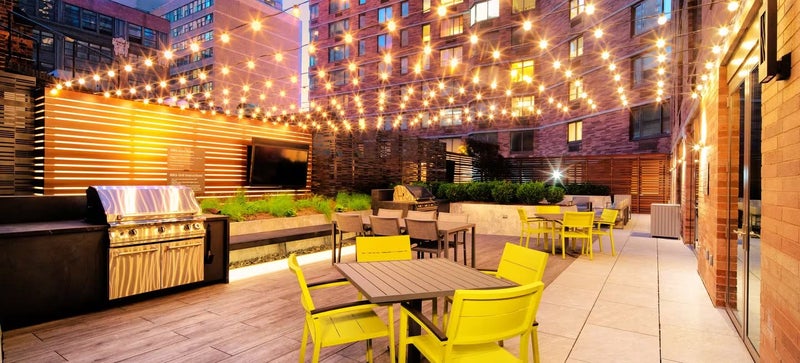 Building Amenities: > 24/7 Doorman & Concierge > Fitness Center > Rooftop Lounge with City Views > Resident Lounge > Laundry Facilities > Elevator Access