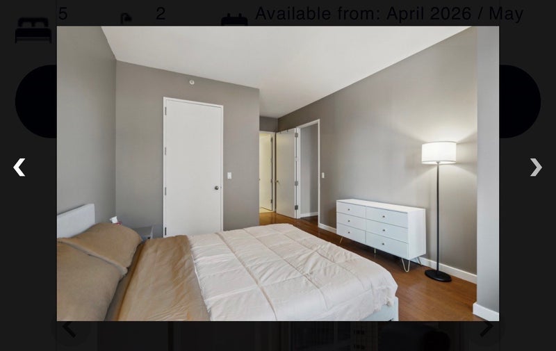 Room includes King Size bed (Not two beds as shown in photos) Private balcony Pillows and comforter provided Residents must bring their own bed sheets, pillowcases, and duvet insert Nightstand Desk with chair Walk-in closet Black out curtains Views of Manhattan Shares AC/heat vent with one other room Apartment The apartment is fully furnished, including a fully equipped kitchen with steel appliances. There are four bedrooms and one bathroom. The apartment has a washer and a dryer for your convenience, as well as high-speed wifi.