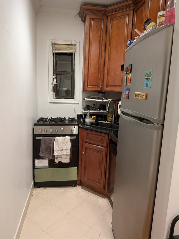The room comfortably fits a queen bed, desk and has a closet. The rooms are on the opposite side providing privacy. The kitchen is well equipped with a full-sized stove, fridge, dishwasher & microwave. The apartment also has a lot of storage space.