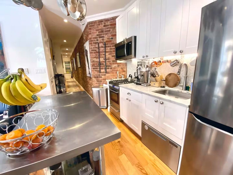 Other common areas include the kitchen, living room, and laundry area. The fire escape is technically accessible by all but only through another bedroom, so we ask that you use it only in case of emergency (and in general, please respect the privacy of other others’ bedrooms). All kitchen appliances, silverware, dinnerware, glassware, spices/seasonings/condiments, coffee, tea, and milk are available for your use, as are laundry supplies and all amenities that are on display (or described in our amenities list).