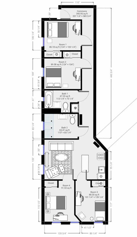 There are 2 bathrooms shared between 4 rooms. We regularly check the bathrooms to make sure they’re clean and have a full supply of towels and soap. In the meantime, please be considerate of your roommates and try to leave the bathroom as you found it, and let us know if there's anything that needs attention.
