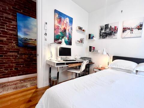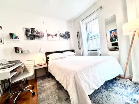 Chore-free private room by Central Park, Broadway restaurants, Amsterdam nightlife, and the B/C and 1/2/3 trains, in renovated 4-bed 2-bath corner apt of elevator building 10-12 minutes walk from campus.